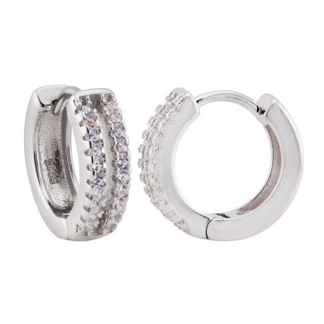 Brinco argola em Prata 925 com fileira de zircônias, que entrega brilho sofisticado e acabamento elegante. O design equilibrado combina estrutura lisa com pedras cravejadas, criando uma peça versátil, moderna e atemporal — ideal para quem busca presença sem exageros.