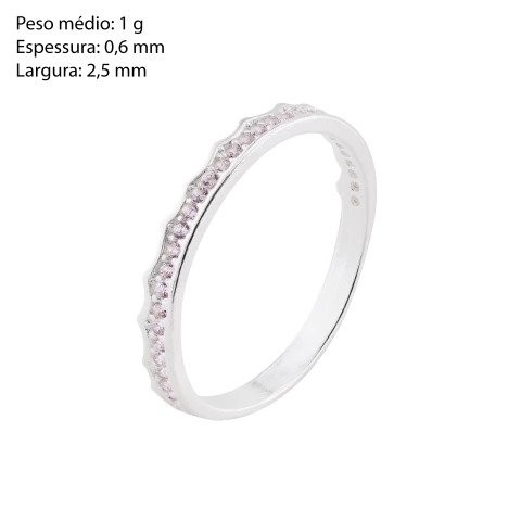 Anel em Prata 925 com fileira de zircônias, delicado e elegante, ideal para quem busca uma joia fina e discreta. Seu design fino com pedras cravadas traz brilho suave, perfeito para uso diário ou para compor mix de anéis.