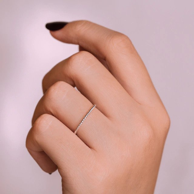 Anel em Prata 925 Torcido, delicado e minimalista, ideal para quem busca uma joia leve, elegante e fácil de combinar. O design torcido traz um toque moderno e atemporal, perfeito para uso diário ou para composições com outros anéis.