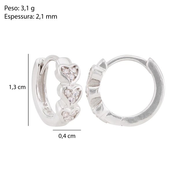 Brinco argola com corações cravejados, que une romantismo e elegância em um design delicado e moderno. O detalhe dos corações adiciona charme especial à peça, tornando-a ideal para quem gosta de joias com significado e brilho sutil.