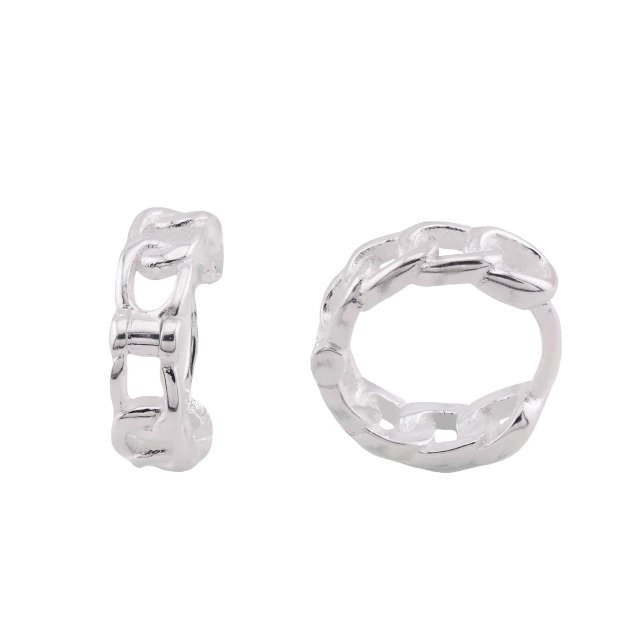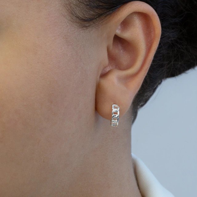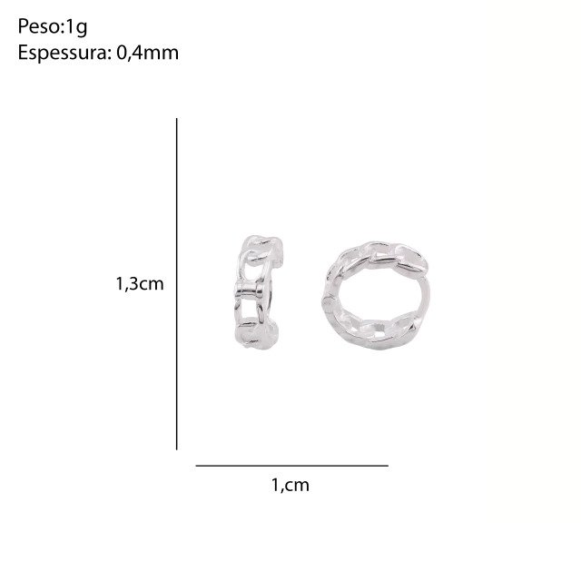 Brinco argola trabalhada em Prata 925, com design diferenciado em elos e acabamento polido. Uma peça moderna, leve e cheia de personalidade, ideal para quem gosta de detalhes sem abrir mão da delicadeza.