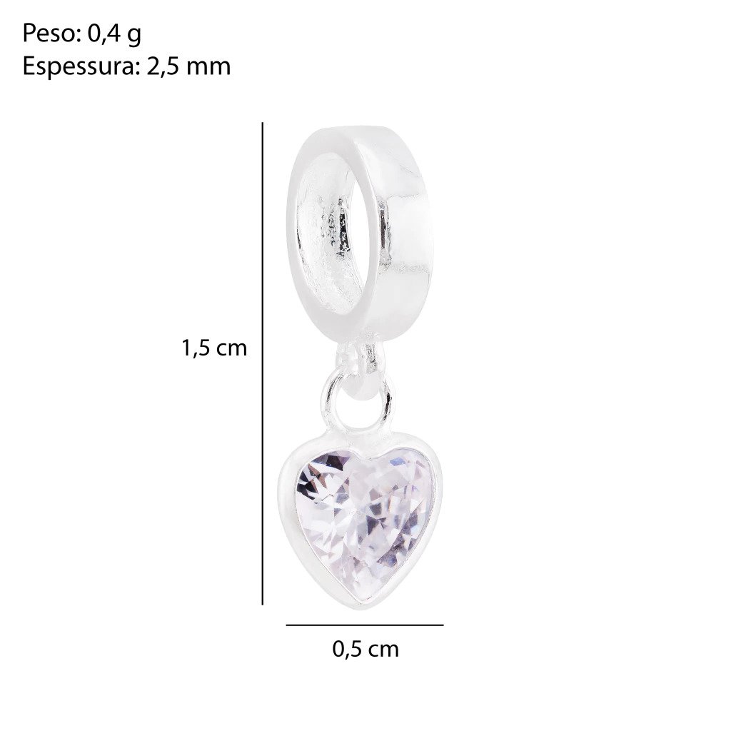 Berloque em Prata 925 com Zircônia em Formato de Coração, uma joia delicada e cheia de significado. O coração em zircônia cristal simboliza amor, carinho e conexão, enquanto o design clean garante um visual elegante e atemporal, perfeito para composições leves e românticas.