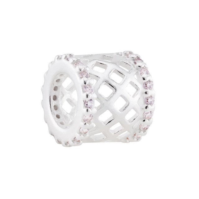 Berloque em Prata 925 Vazado com Zircônias Rosas, uma joia delicada e sofisticada que combina leveza e brilho. O design vazado cria um efeito moderno e elegante, enquanto as zircônias rosas cravejadas ao redor trazem um toque romântico e feminino, valorizando ainda mais a peça.