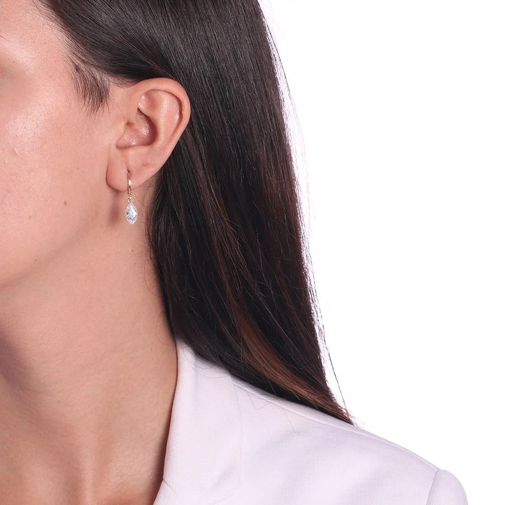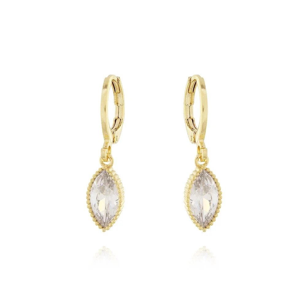 Brinco Argola com Pingente Navete em Zircônia – Semi Joia Dourada 18K