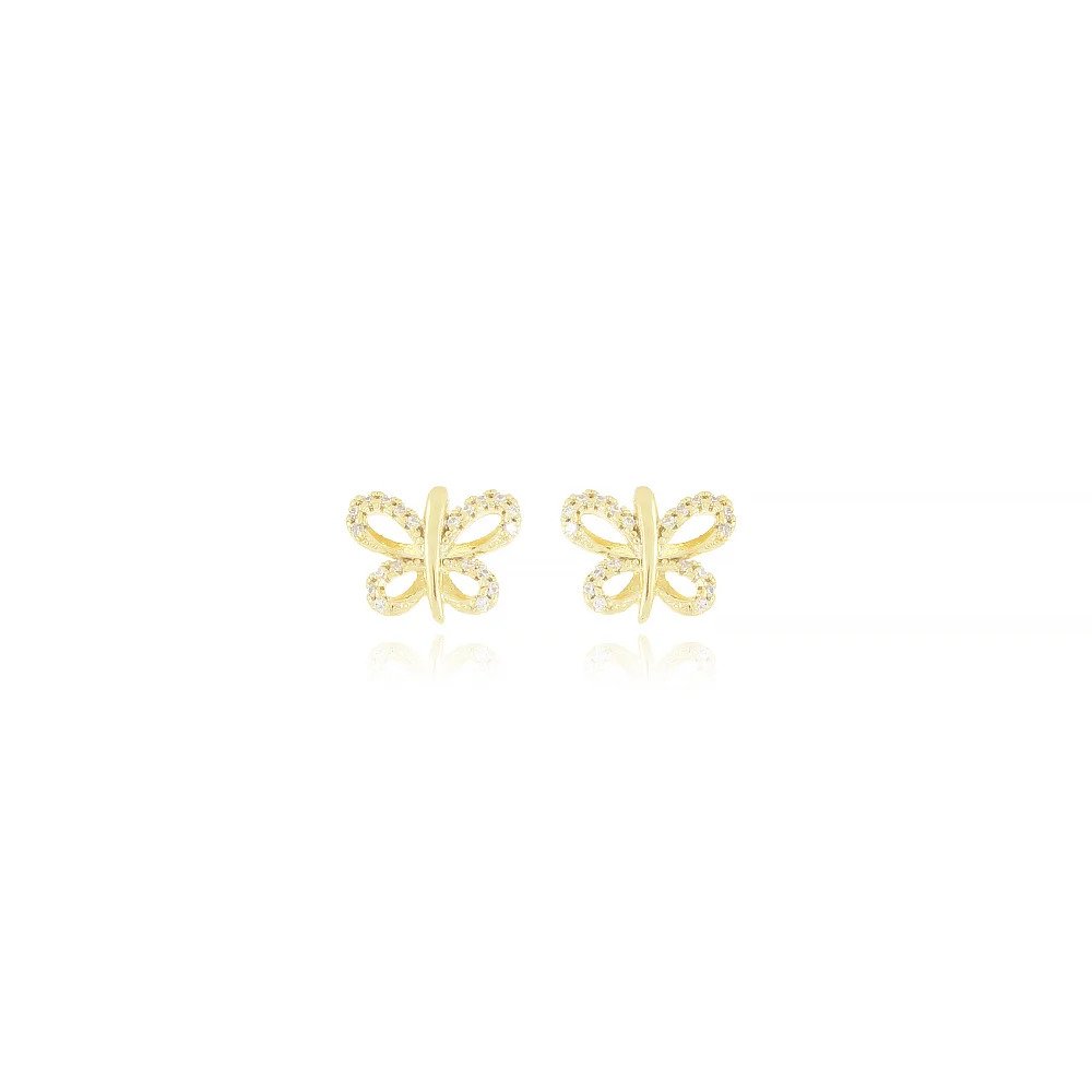 Brinco Borboleta Cravejada – Semi Joia Banhada a Ouro 18K