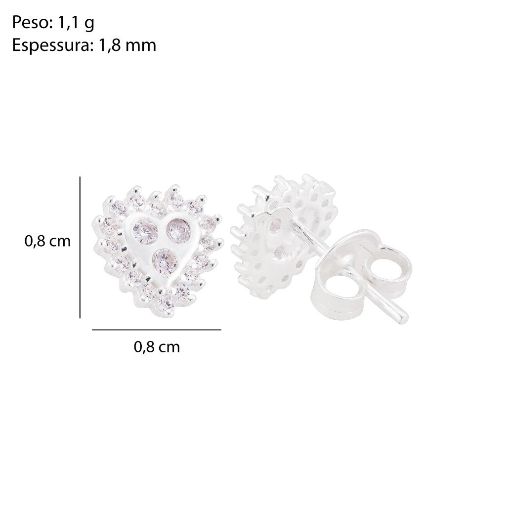 Delicado e cheio de charme, o Brinco Coração em Prata 925 combina romantismo e brilho na medida certa. O design traz um coração central liso, envolvido por zircônias cravejadas, criando um contraste sofisticado e um efeito luminoso delicado.