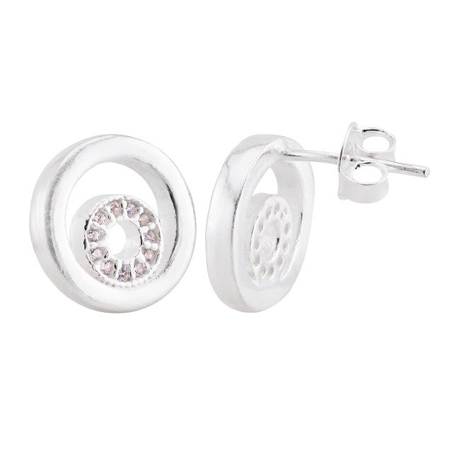 Moderno e sofisticado, o Brinco Círculo Vazado em Prata 925 combina design contemporâneo com brilho delicado. O formato circular vazado ganha destaque com um aro interno de zircônias cravejadas, criando um efeito luminoso sutil e elegante.
