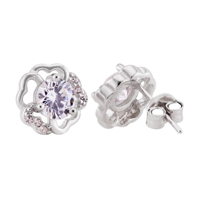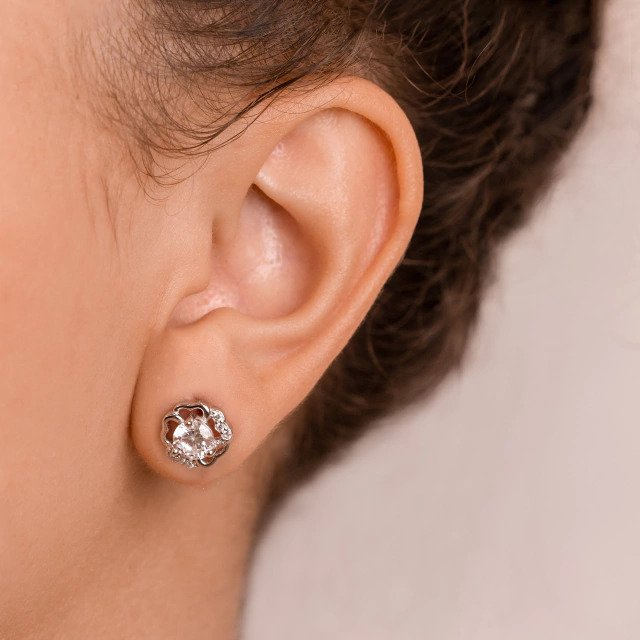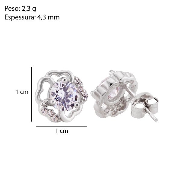 Brinco em formato floral, com pedra central em destaque e detalhes cravejados que proporcionam brilho delicado e acabamento refinado. O design equilibrado une elegância e presença, ideal para quem busca uma joia marcante sem perder a delicadeza.