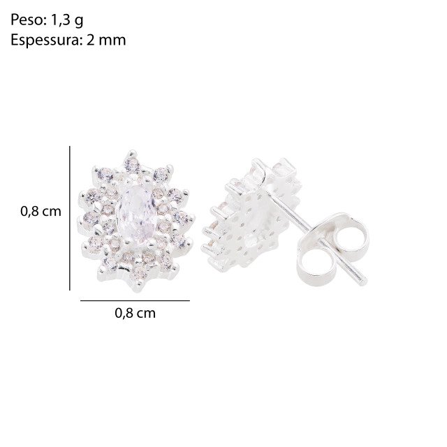 Delicado e sofisticado, este brinco em Prata 925 apresenta um design oval com zircônia central envolvida por zircônias menores cravejadas, criando um brilho intenso e refinado. O formato clássico ganha destaque com o acabamento detalhado, perfeito para quem busca elegância em cada detalhe.