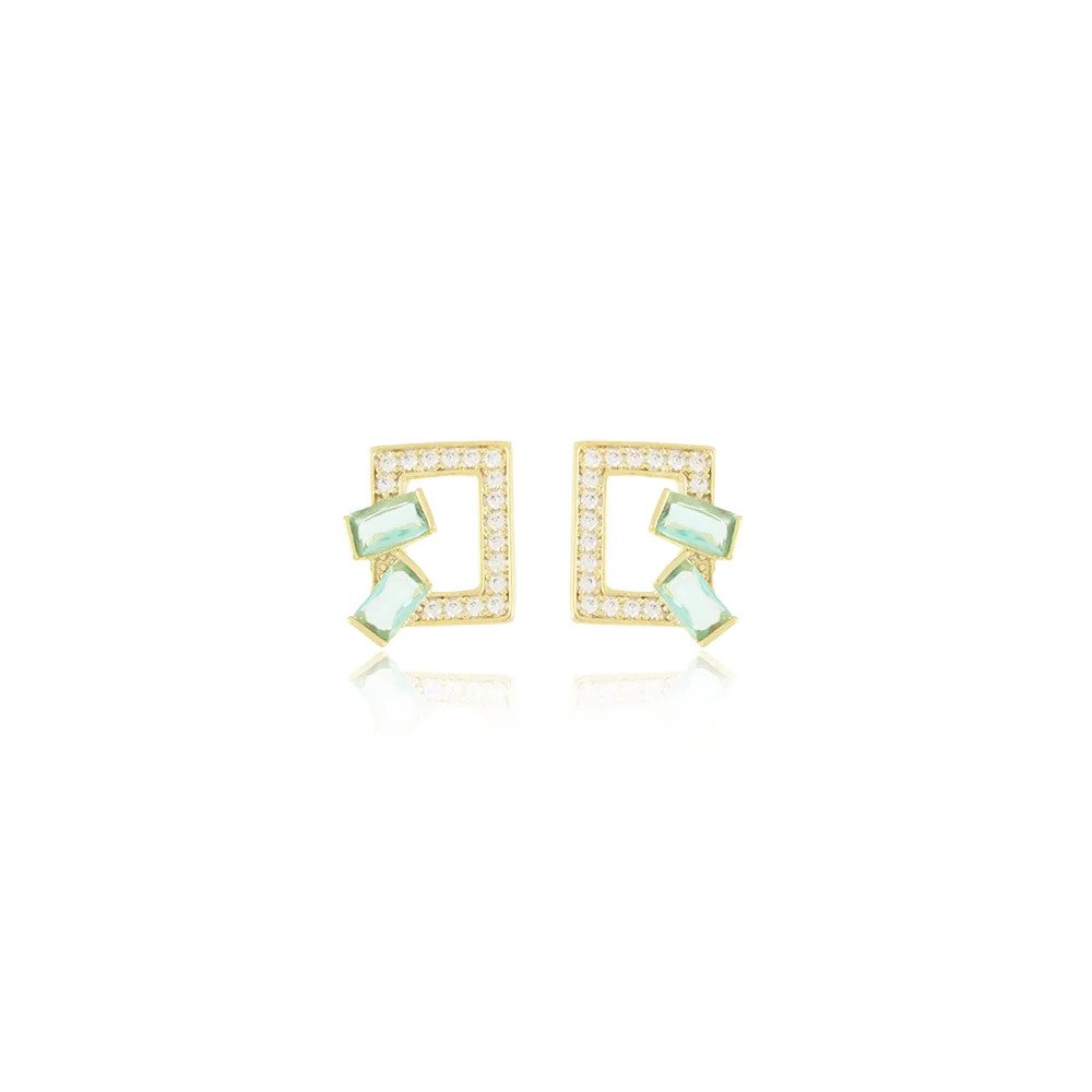 Brinco Quadrado com Zircônias Retangulares Verde – Semi Joia Banhada a Ouro 18K
