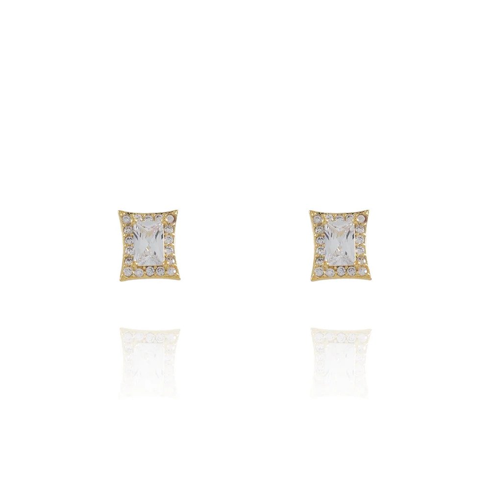 Brinco Quadrado com Zircônia Central Cravejada – Semi Joia Banhada a Ouro 18K