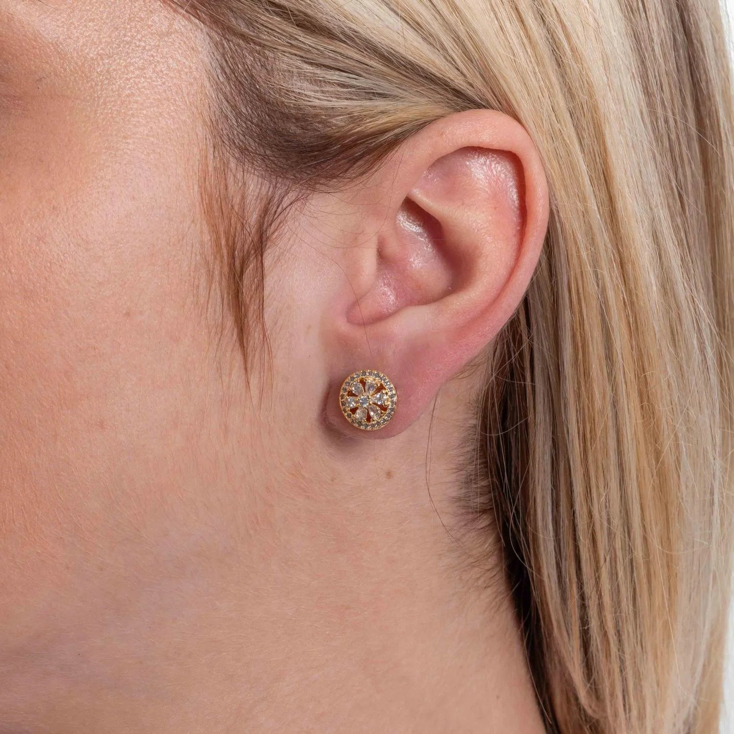 Brinco Redondo Floral Cravejado com Zircônias – Semi Joia Banhada a Ouro 18K