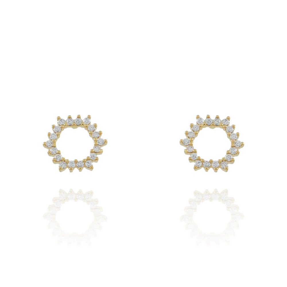 Brinco Redondo Vazado Cravejado com Zircônias – Semi Joia Banhada a Ouro 18K