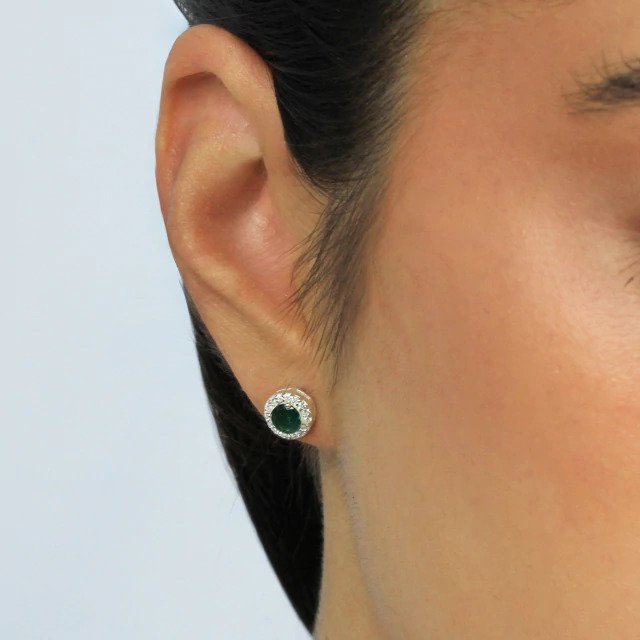 Brinco ponto de luz redondo em Prata 925, com pedra central verde esmeralda e contorno delicado em zircônias brancas, que realçam ainda mais o brilho da peça. Um clássico sofisticado, elegante e atemporal.