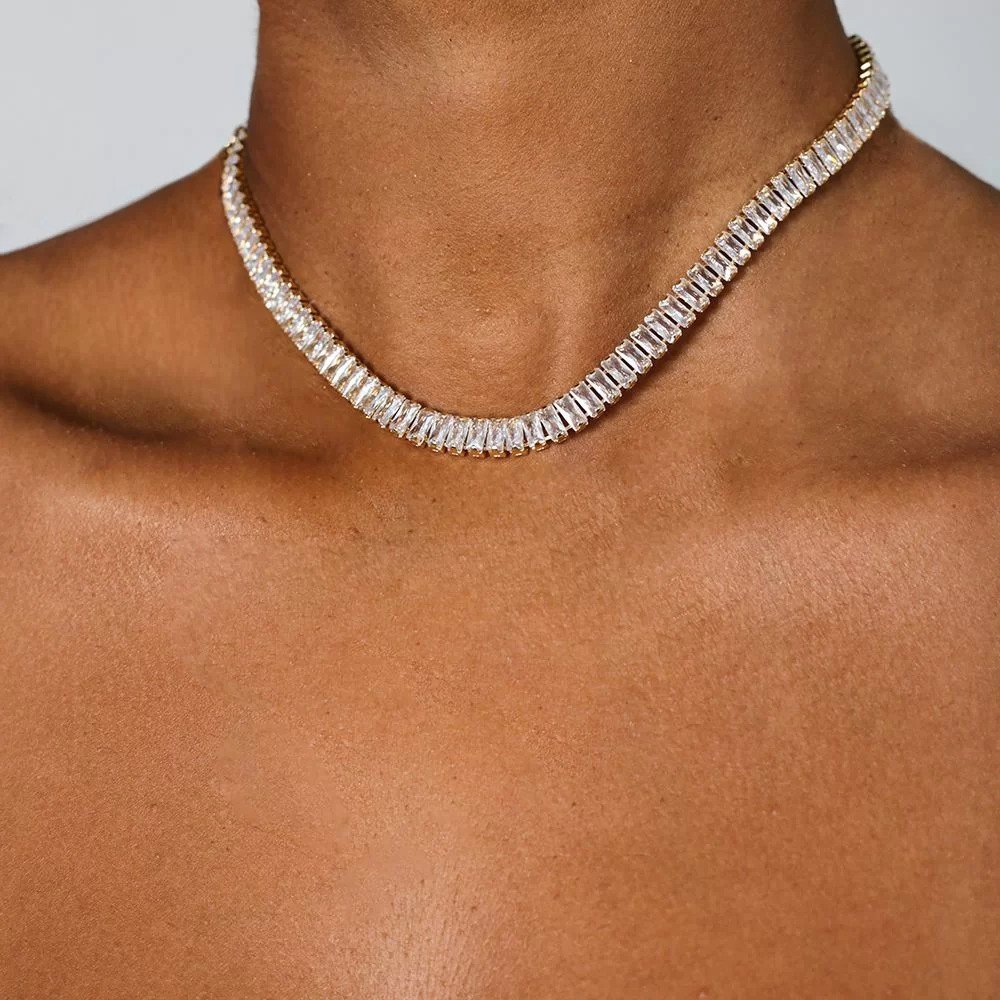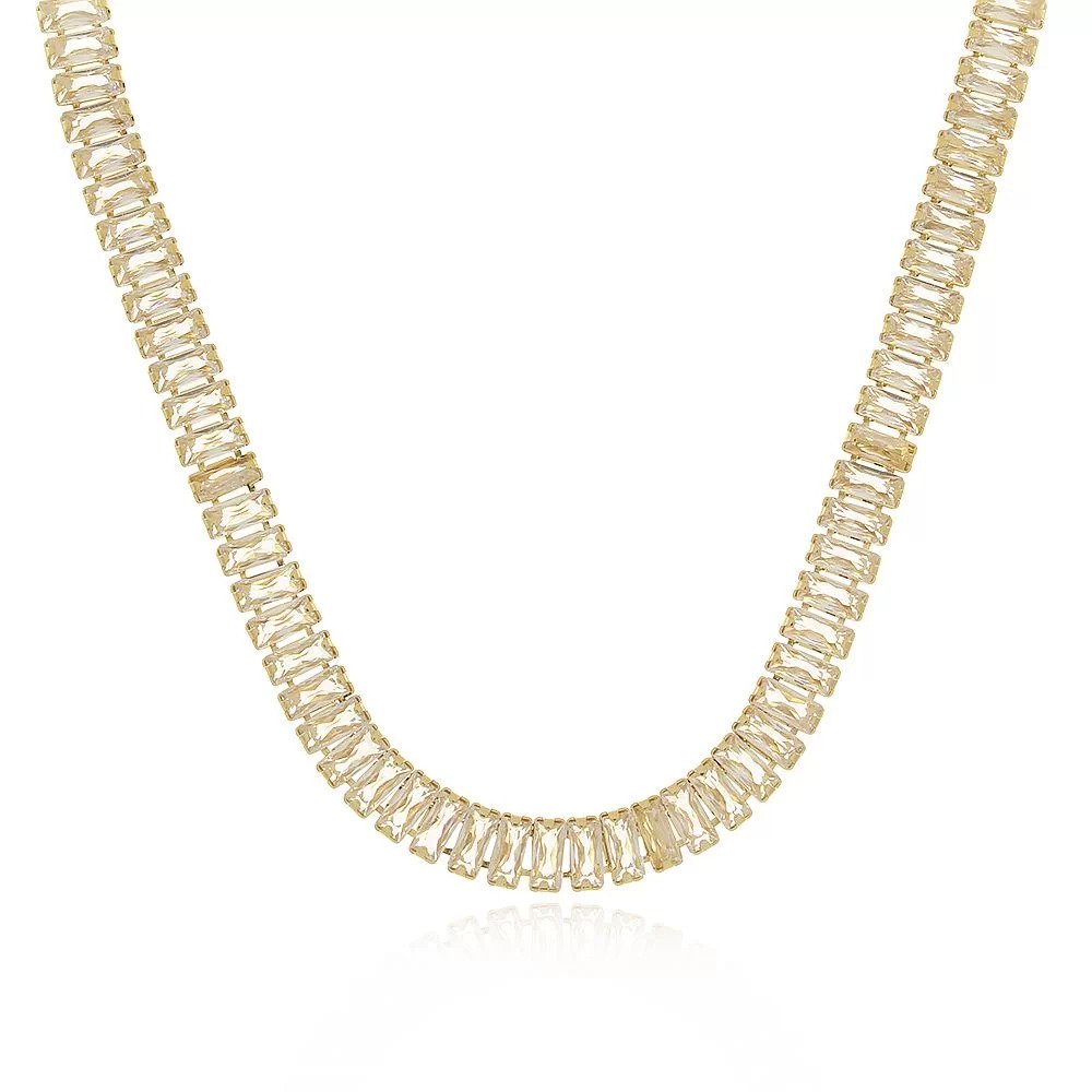 Colar Riviera com Zircônias Baguete – Semi Joia Dourada Banho Ouro 18k