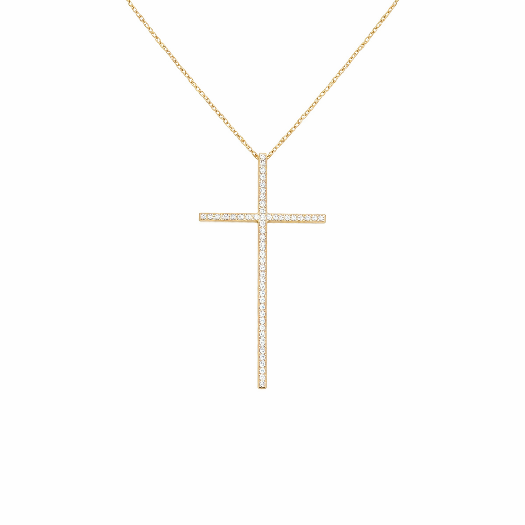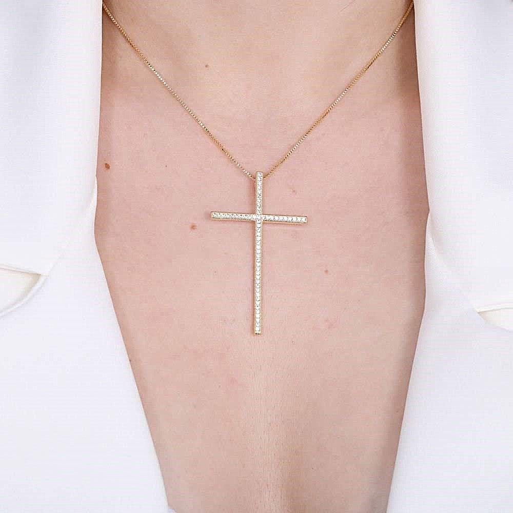 Colar de design elegante e atemporal, com pingente de cruz cravejado que traz brilho sutil e um toque de sofisticação à peça. Seu visual delicado e marcante faz dele uma excelente escolha para quem busca um acessório simbólico, feminino e fácil de combinar com diferentes estilos.