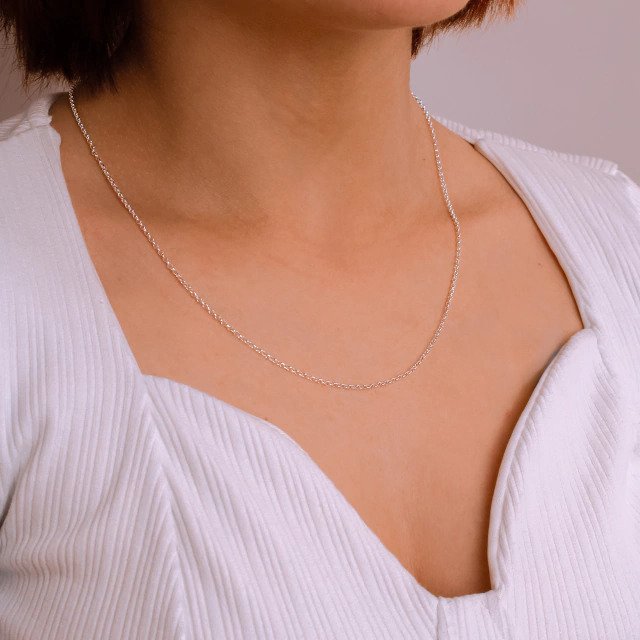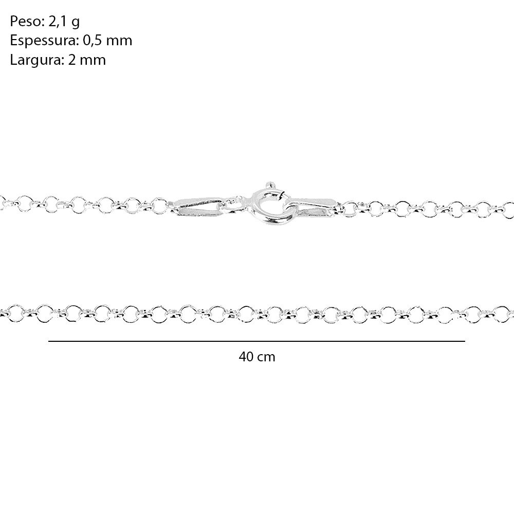 Esta corrente em Prata 925 legítima, com 45 cm, possui elos redondos delicados que oferecem brilho sutil e um caimento elegante, ideal para quem busca uma peça discreta, porém refinada.