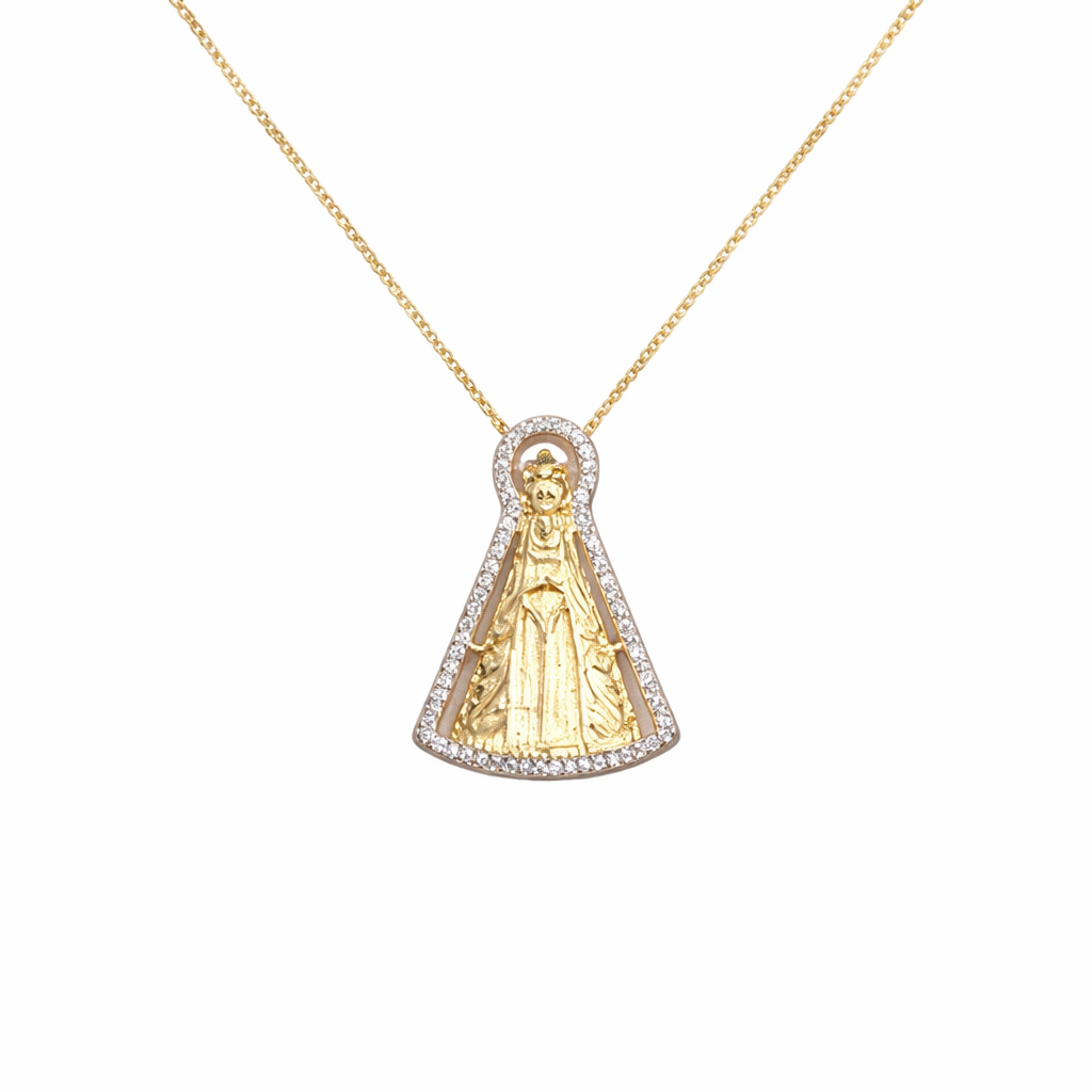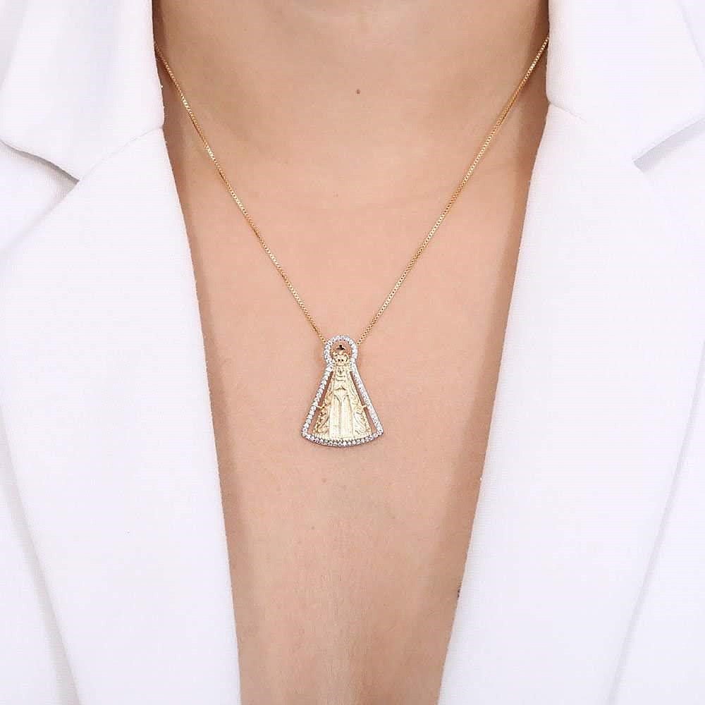 Colar de design delicado e simbólico, com pingente de Nossa Senhora Aparecida contornado por brilho suave que valoriza ainda mais a peça. Seu visual elegante e cheio de significado faz dele uma excelente escolha para quem busca um acessório feminino, marcante e fácil de combinar com diferentes estilos.