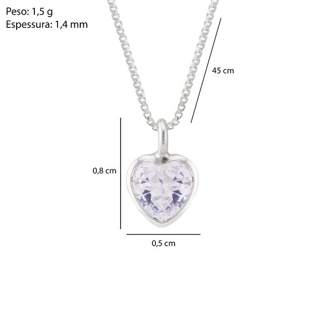 Produzido em Prata 925 legítima, este modelo traz um pingente em formato de coração, cravejado com zircônia branca lapidada, que destaca reflexos intensos e sofisticados.