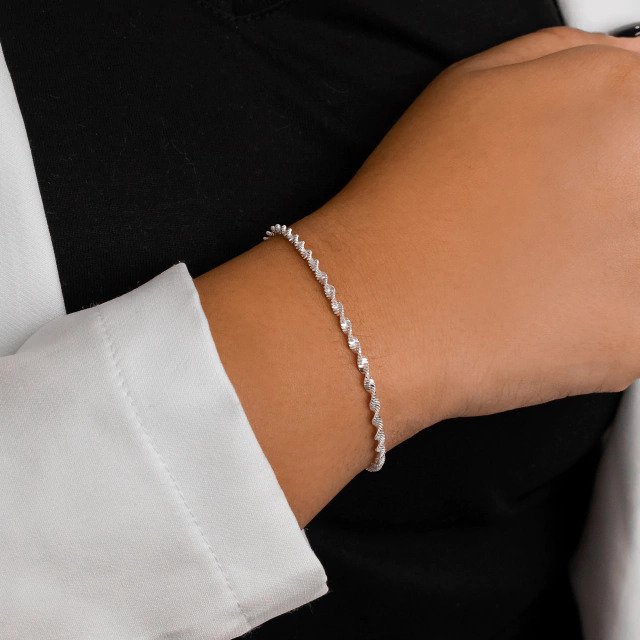 Pulseira em Prata 925 com Elos Torcidos, uma joia clássica e elegante, perfeita para quem busca sofisticação com um toque de textura diferenciada. O design em elos trabalhados cria reflexos sutis de luz, valorizando o acabamento polido e trazendo um visual atemporal.