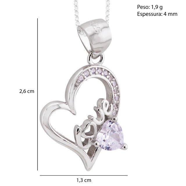 Pingente Coração com Zircônia e Detalhe Love em Prata 925