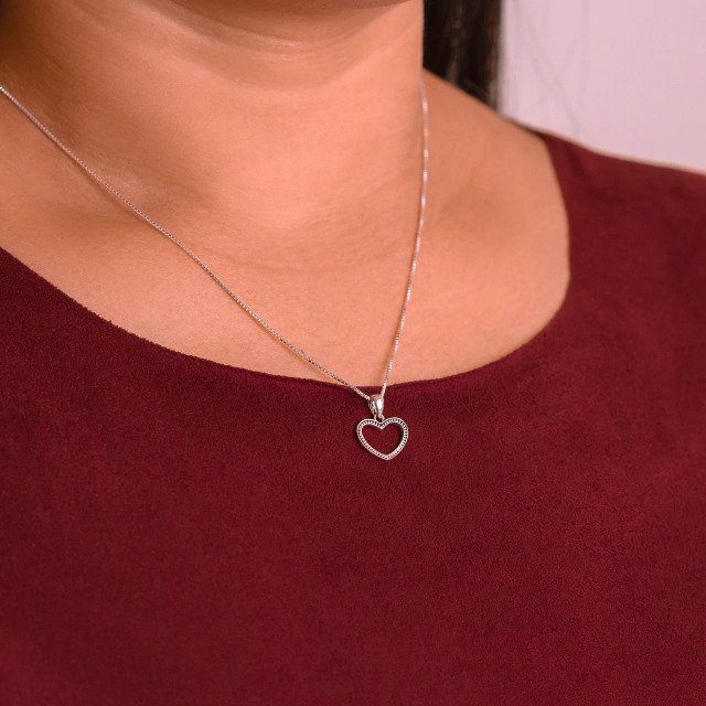 Pingente Coração Vazado em Prata 925. Pingente em formato de coração vazado confeccionado em Prata 925, com acabamento polido e detalhe pontilhado em relevo ao redor do contorno, trazendo um toque delicado e moderno à peça. Ideal para uso diário ou para compor combinações cheias de significado.