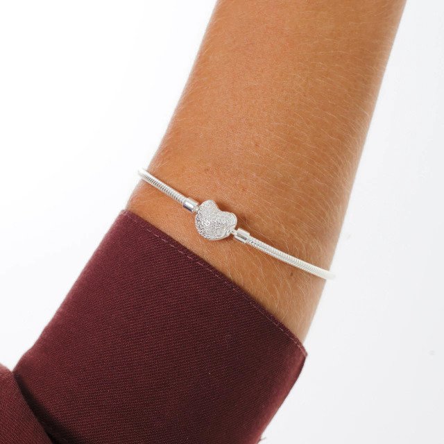 Pulseira em Prata 925 com Coração Cravejado Central, uma joia elegante e marcante que une delicadeza e presença. O coração central com acabamento cravejado traz brilho intenso e um visual sofisticado, enquanto a corrente estilo malha oferece conforto e um toque moderno à peça.