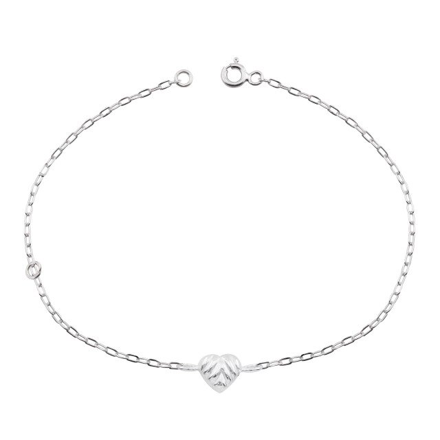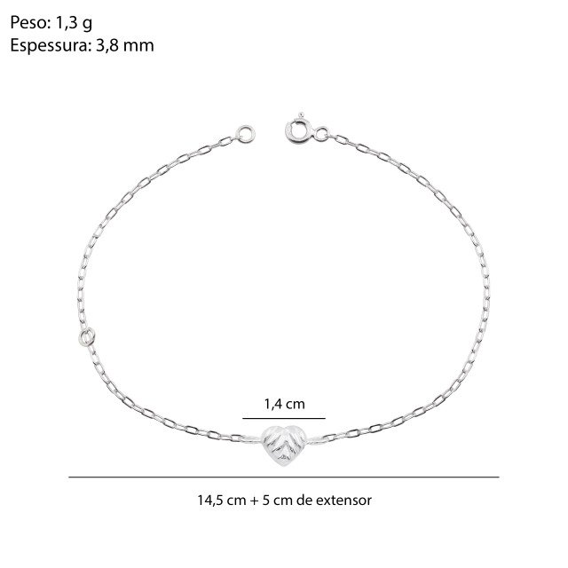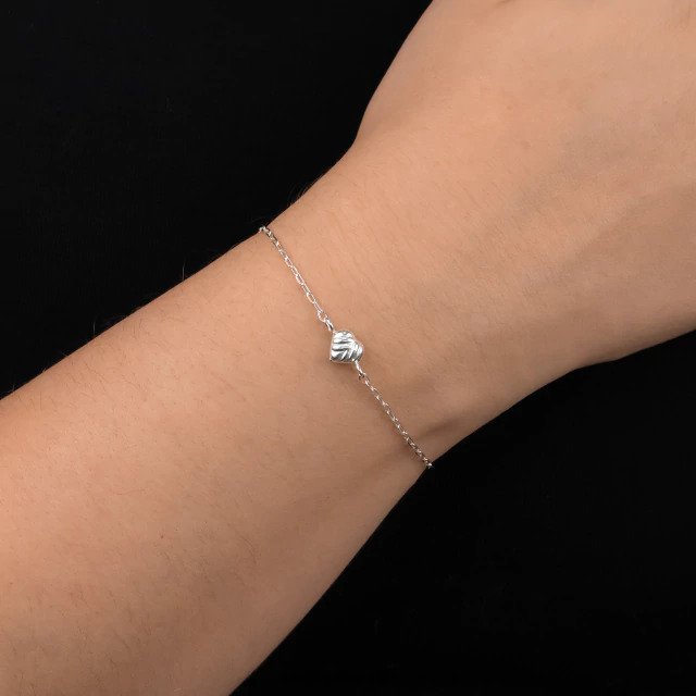Pulseira em Prata 925 com Coração Central, uma joia delicada e cheia de significado. O design minimalista valoriza o coração em relevo no centro, trazendo um toque romântico e atemporal, perfeito para quem ama peças sutis e elegantes.