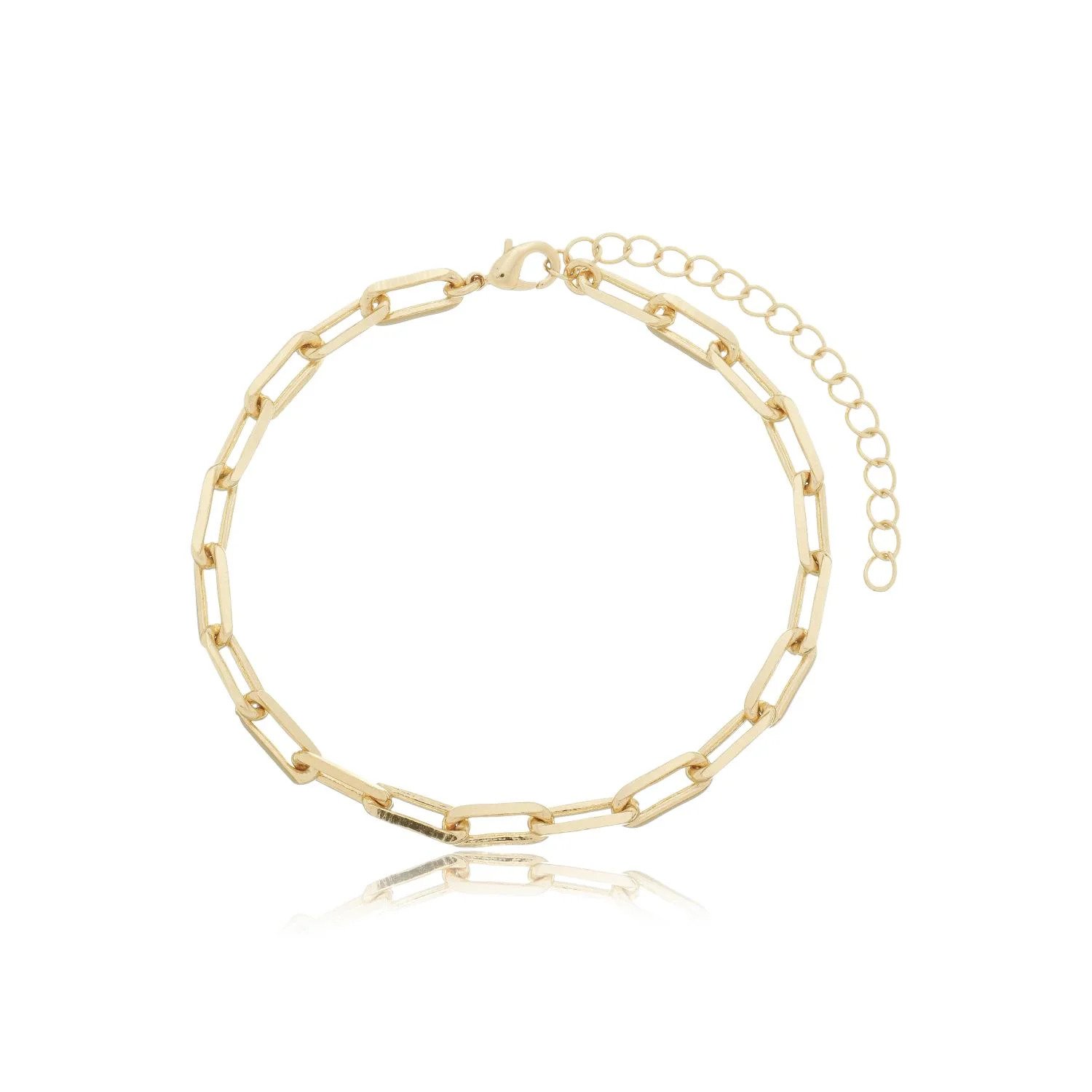 Pulseira confeccionada em semi joia dourada com banho em ouro 18k, composta por elos retangulares alongados, que trazem um visual moderno, elegante e sofisticado. Possui verniz protetor, que auxilia na durabilidade da peça e preservação do brilho, além de fecho tipo lagosta e extensor regulável, garantindo ajuste confortável e seguro ao pulso.