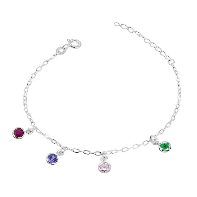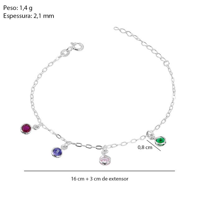 Pulseira em Prata 925 com Pingentes de Zircônias Coloridas, uma joia delicada e cheia de charme, perfeita para quem gosta de um toque de cor no visual. Os pingentes com zircônias em tons variados criam movimento e brilho sutil, deixando a peça leve, moderna e feminina.